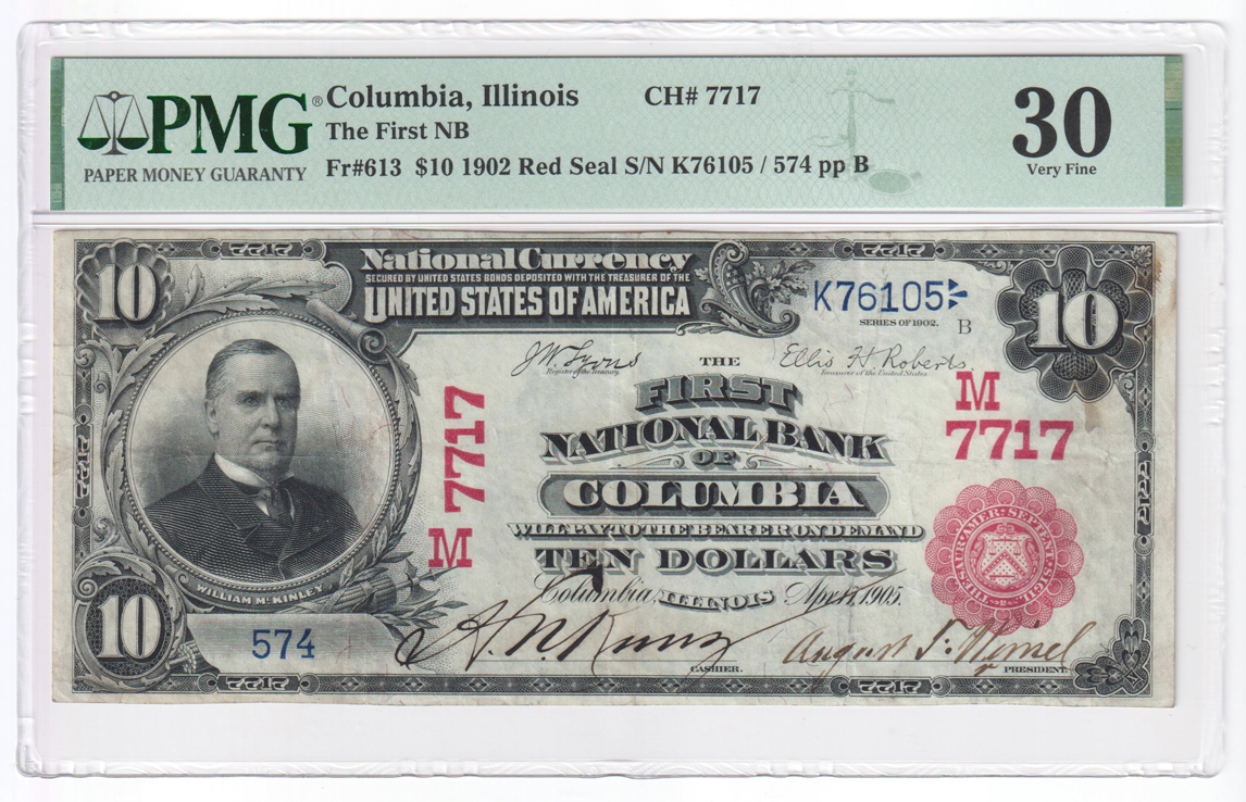 1902 $10 Red Seal - Columbia, IL Charter #7717 - PMG VF-30
