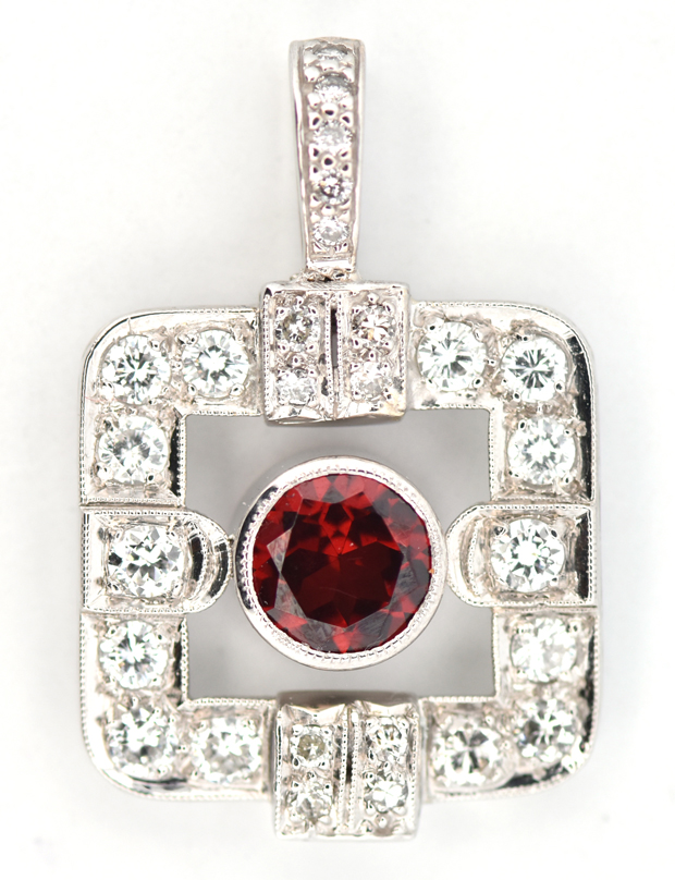 Lot Title: 14K White Gold Pendant with a Round Garnet, GIA #1236690519