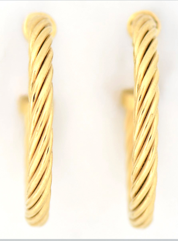 Description: These David Yurman earrings have a twisted cable design, very familiar to all of the David Yurman fans out there. They use a patented construction that provides a specific type of flexible, spring-like feature. These 3mm easy-to-wear hoop earrings are the perfect every day staple! Dimensions 1” x 1”, 3.7 dwt.