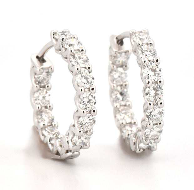 18K White Gold Diamond Hoops