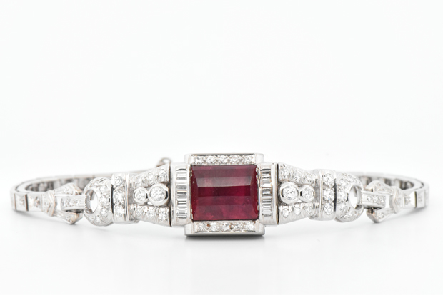 Lot Title: 14K White Gold and Platinum Diamond and Rubellite Bracelet