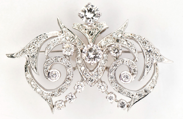 14K White Gold Diamond Swirl Brooch