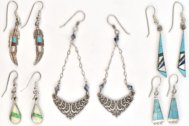 Description: In this lot you will find 20 pairs of darling sterling silver earrings, a majority with stones. The total weight with stones is 3.86 troy ounces.
