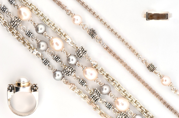 Description: Here you will find eight stylish sterling silver Michael Dawkins pieces. There are five bracelets, one necklace and two rings. 8.38 troy ounces.