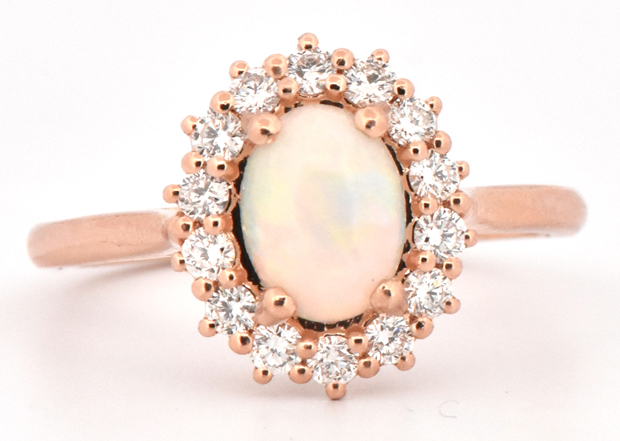 Lot Title: 14K Rose Gold Diamond and Opal Ring