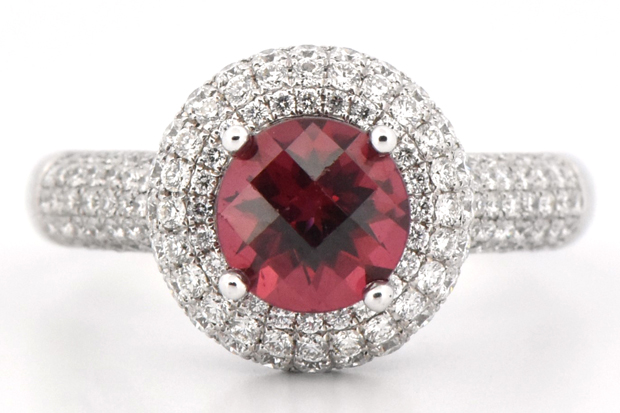 Lot Title: 18K White Gold Diamond Ring with a Rhodolite Garnet, GIA #2235690392
