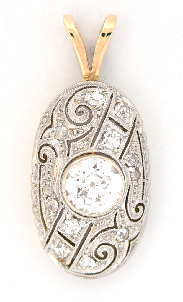 Lot Title: 14K Two-Tone Gold Diamond Pendant with a .60 Carat Old European Brilliant, GIA #2215579591