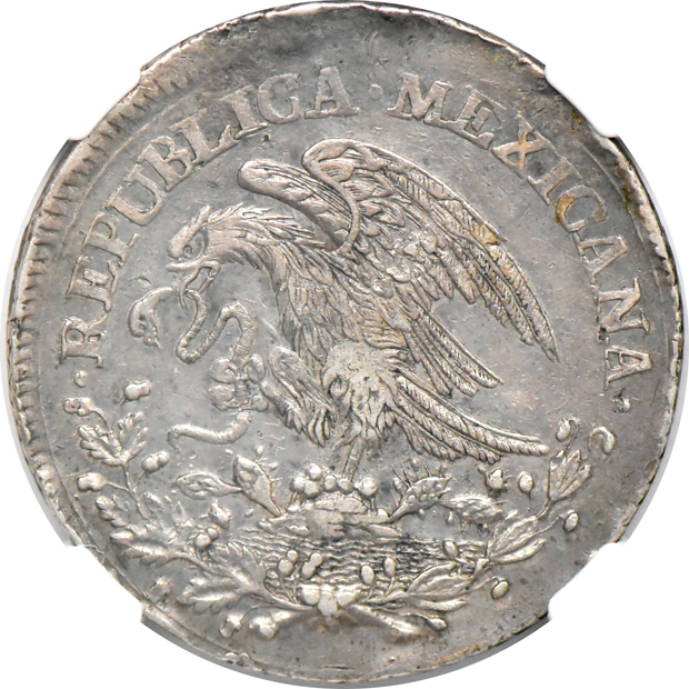 Lot Title: Mexico - 1824-Do RL Folded Snake, Large Libertad 8 reales - NGC AU-50