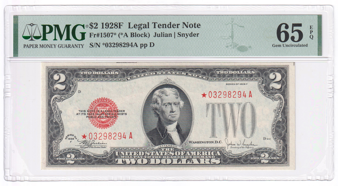 Lot Title: 1928-F $2 Star Fr# 1507* - PMG GemCU-65 EPQ