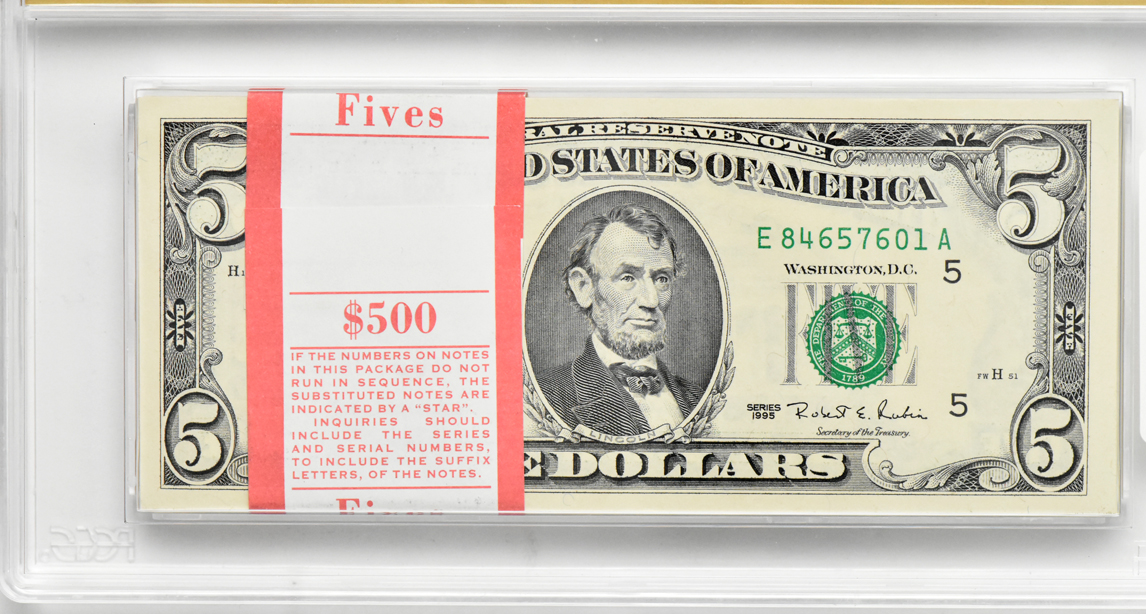 Lot Title: Full Pack of a Hundred 1995 $5 Richmond Fr# 1985-E - PCGS Superb GemCU-67 PPQ