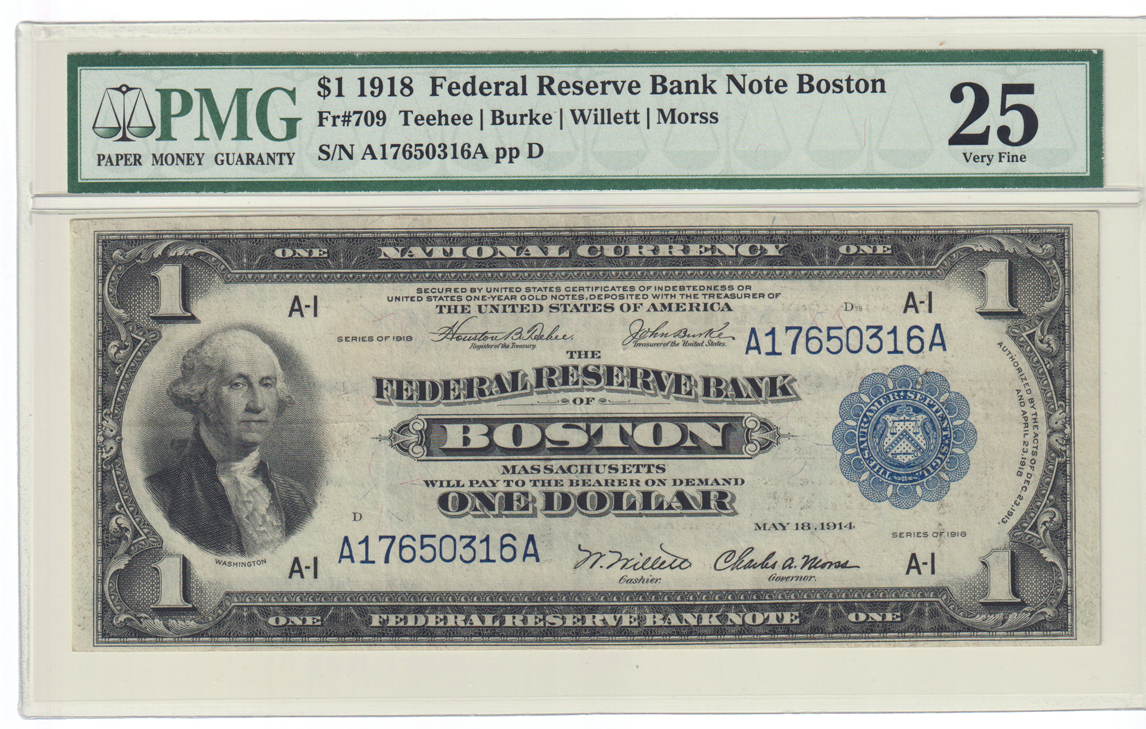 Lot Title: 1918 $1 Boston Fr# 709 - PMG VF-25