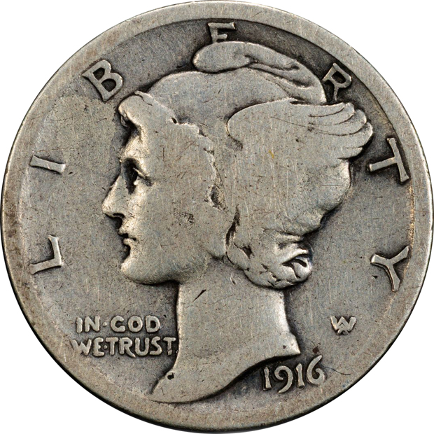 Lot Title: 1916-D Mercury PCGS VG details/cleaned
