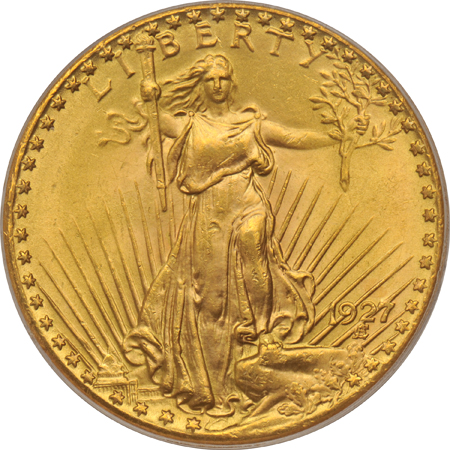 Description: In either case, the quality seems superior to MS-63, with perfect, powdery medium-gold patina draping both of these powerfully impressed double-eagles. 1927 displays a surprisingly sharp abrasion on the capitol's dome, but these are otherwise pleasing problem-free pieces in this two coin lot.