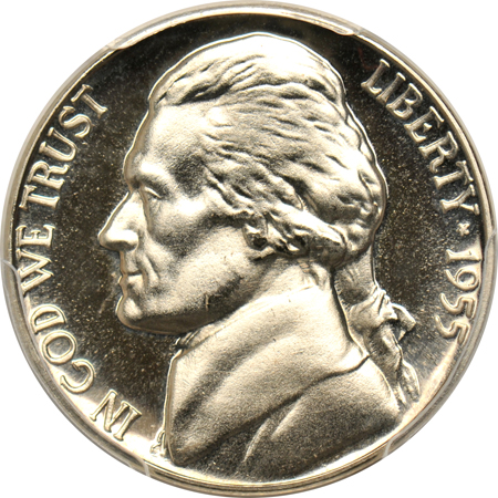 Description: Clem Stevens Collection. Modern pieces comprise this quartet, all in current-era PCGS holders. A pair of cents list as a 1956 (PF-65 RD CAM) and a 1960 small date (PF-66 RD CAM), with both showing blistering flame-red patina. Nickels list as a 1955 (PF-67 CAM) showing lovely ivory-white devices, and 1964 (PF-67 DCAM), a white coin ablaze in pure white-on-black contrast. Four coin lot.