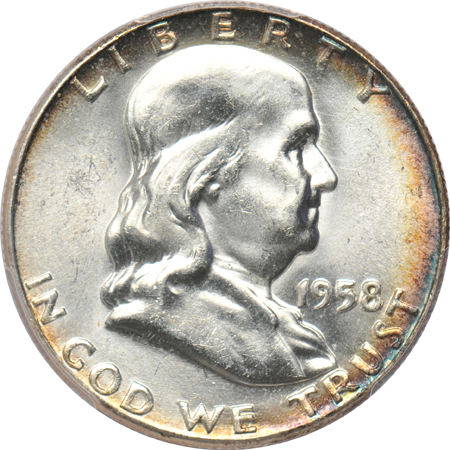 Description: Clem Stevens Collection. Some prettier pieces make up this offering, with none repeated as to date and mintmark. A quick tabulation is as follows: 1949 (MS-63 FBL, pretty rim tone), 1949-S (MS-63, blistering white and surprisingly semi-prooflike), 1951 (MS-64, nice rim color), 1952 (MS-64, vivid narrow rim tone), 1954 (MS-64, smoky patina), 1956 (MS-64, absolutely stunning eye-appeal), 1958 (MS-64, vivid rim color), and 1958-D (MS-64, obvious album rim color). Eight coin lot.