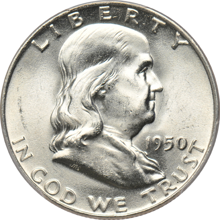 Ten Franklin half-dollars certified MS-65FBL by PCGS