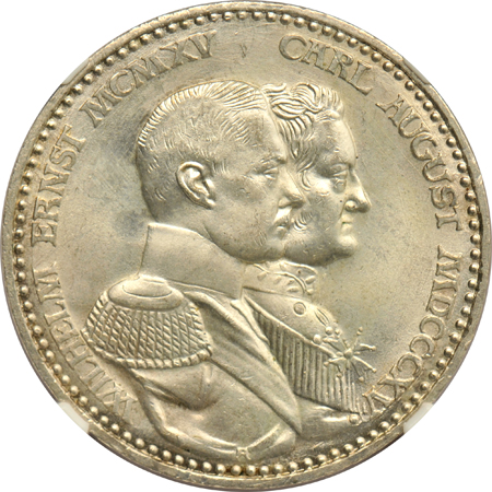 Description: While not exactly the "Seven Wonders", this septet of world silver nonetheless provides some fun viewing for those who appreciate the artistry of European mints. They may be listed as follows: Austria 1879 "Silver Wedding Anniversary" 2-florins (MS-62, somewhat prooflike as usual), Bulgaria 1937 100-leva (AU-53, dusky lead grey), Germany 1892F 1-mark (AU-58, gorgeous deep bronze patina), Germany 1914J 1/2-mark (XF-45), Germany-Saxe-Weimar-Eisenach 3-mark (MS-66, astonishing and extremely frosty example of this Centenary issue), Great Britain 1883 sixpence (XF-40), and Great Britain 1893 1-shilling (VF-20). Amusing items in this seven coin lot!