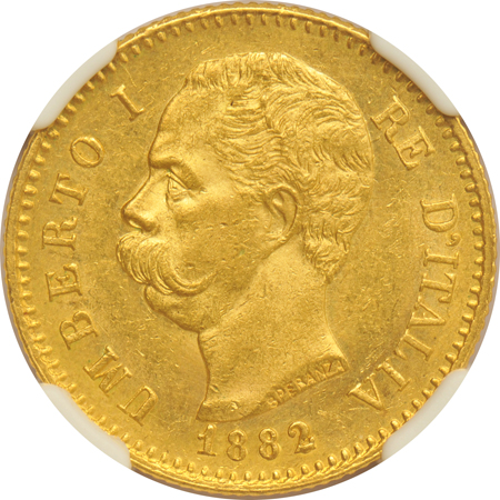 Lot Title: Multiple - 1882-R Italy G20L MS-62, 1901-A Germany 20M AU details/mount removed, and a 1930 Uruguay G5P MS-63, all NGC