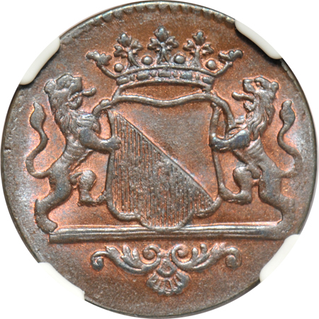 Lot Title: Multiple - 1684 Italy Carlin, Naples NGC AU-55, and a 1790 Netherland Duit, Utrecht NGC MS-66 BN