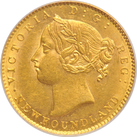 Description: Pedigrees accompany each member of this PCGS trio. They can be listed as follows: Canada-Newfoundland 1945-C 5-cent silver (MS-66, ex-Belzberg, slightly reflective luster), Canada-Newfoundland 1941-C 10-cent (MS-64, ex-Belzberg, shimmering platinum-beige with charcoal border toning), and Canada-Newfoundland 1881 gold 2-dollar (MS-62, ex-Eliasberg, trivial hairlines). Three coin lot.