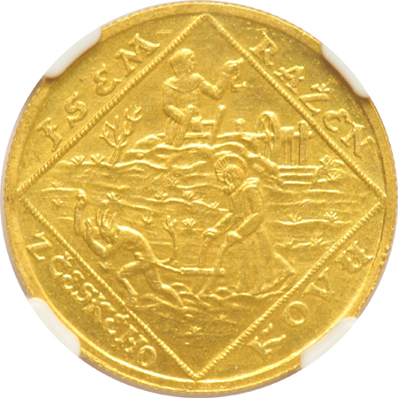 Description: Restrikes of the 1928-dated gold 2-ducat were struck in 1973 of the exact same composition of the originals, comprised of 6.98 grams of pure gold. This gem example represents the type very well, although the restrikes most often do survive in high grade.