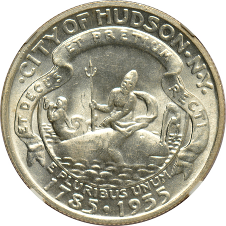 Description: The broad, low-relief design for the Hudson is not normally conducive to clean surfaces, but even at this, just the MS-63 level, this premier quality example displays no obvious contact. Each side flashes with pristine white brilliance and rather intense luster. A couple of small reed marks on the central sail of the reverse appear to be the only mentionable ticks.