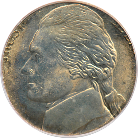 Jefferson nickel struck on a clad 10c planchet