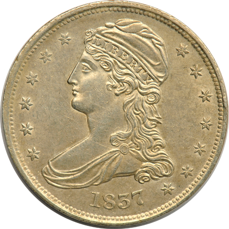 1819 quarter F, and an 1837 half-dollar AU details