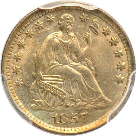 Description: R.E.N. Steel Collection. The extraordinary appearance stems in small part from the presence of an exorbitantly clashed die. Raised lines in the detail creep and crawl about Liberty's portrait, although some of the clashing has been lapped off the reverse die. An exquisite gem, each side features highly attractive grapefruit-silver patina engaged with the sparkling luster.