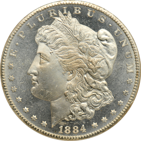 Description: Dramatic exhibition of the beauty of a DMPL dollar couldn't be better exemplified as this black-and-white Carson City example shows nearly the maximum possible reflectivity in the fields. Outrageous strike definition shows exactingly defined crevices within the cotton bolls, and the eagle's breast feathers offer astounding sculpted definition. An excellent gem dollar!