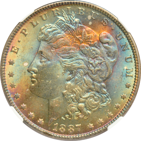 Description: Vida D. Bertie's Consignment. 1884-O absolutely should have earned a "star" from NGC, given the gorgeous pastel-magenta toning across the reverse, along with indigo-grey accents across portions of the obverse and a third of the obverse. 1887 did earn the "star" due to astounding indigo-jade across almost the entirety of both sides, punctuated on the obverse by flashes of magenta-orange and ruby-chartreuse on the obverse. Finally, 1904-O displays a brief area of toning toward the far lower left quadrant of the obverse. Three coin lot.