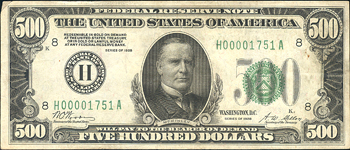 Lot Title: 1928 $500 St. Louis Fr# 2200H - VF/retrimmed