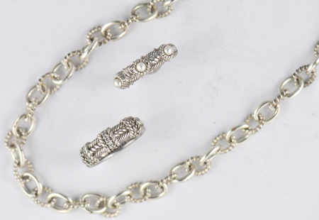 Description: This lot contains fifteen Judith Ripka sterling silver pieces. There are nine rings, three necklaces, two pendants and one pair of earrings. The total weight of this lot is 8.37 troy ounces.