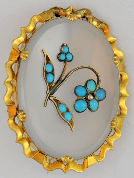 Description: From the Pennsylvania Dutch Collection, these four pins will fill the need for four separate occasions! The first pin is a 14K yellow gold poodle with small diamond accents. If you are more in the mood for something vintage, wear the oval shaped pin with small diamond accents that has a more Art Nouveau feel to it or the small diamond cross with old cut round diamonds and black enameling. If you are feeling artsy, wear the yellow gold, camphor glass and turquoise piece! 36.1 dwt.