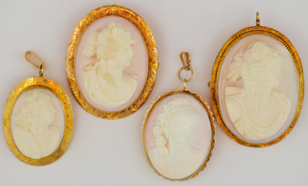 Lot Title: Group of Yellow Gold Cameo Pins/Pendants