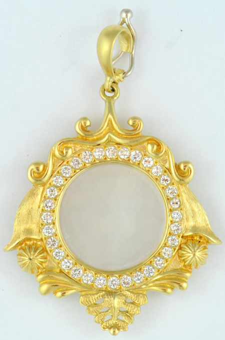 Lot Title: 18K Yellow Gold Mother of Pearl and Diamond Pendant