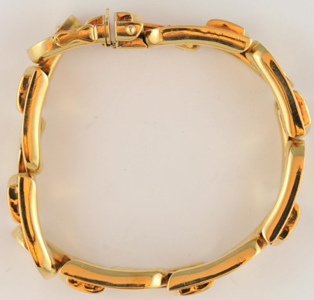 Description: Ever since yellow gold made its come back, I can’t seem to keep this chunky gold jewelry in stock! This retro link bracelet has a simple design and would be a great addition to any collection. 7.5”, 34.2 dwt.