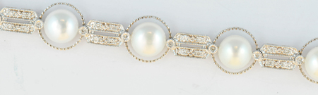 Lot Title: 14K White Gold Diamond and Pearl Bracelet