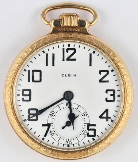 Description: The following watches are all nice and clean 16 size, lever set pocket watches that wind, set and run. a. 10K yellow gold filled Elgin man’s pocket watch signed “Father Time” on the movement. b. Illinois Bunn Special man’s pocket watch. c. Elgin man’s pocket watch signed “B.W. Raymond”. d. Hamilton man’s pocket watch with a 992B movement. e. Elgin man’s pocket watch signed “B.W. Raymond f. Illinois Bunn Special man’s pocket watch. g. Illinois Bunn Special, double roller man’s pocket watch