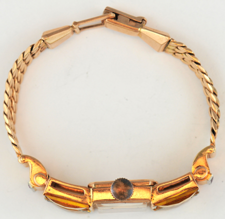 Description: This lot consists of three extra cool pieces! The first is a ladies 14K rose gold watch with a square face by Lucian Picard. The watch winds but does not set but that doesn’t matter because it can still be worn as a fabulous bracelet! On either side of the face are citrine stones with small diamond accents. The second watch is also a ladies made by Ollendorff with a square face. This one does wind, set and run. On either side are small diamond and sapphire accents. The rose gold face is attached to a 10K yellow gold band. Lastly, there is a thermometer/compass that measures about the size of a quarter and is gold filled. The front is protected with a clear crystal while the back flips over to a black onyx. Total weight (excluding the gold filled) is 28 dwt.