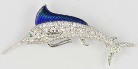 Lot Title: Platinum Diamond and Enamel Swordfish Pin