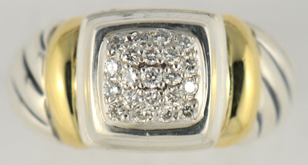 Description: In this lot we have a 14K and sterling silver 7mm wide choker from the David Yurman Hampton Collection. We also have an 18K and sterling silver, cable design ring with .40 cttw of diamonds. This lot weighs a total of 3.35 troy ounces.