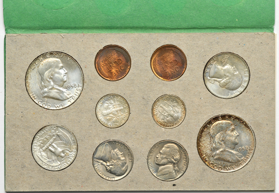 Description: Roman Powers Collection. Collector appeal: "B". Supremely original, every single coin displays dusky patina and a few of the silver pieces have developed pleasing color, such as one 1958 quarter and a 1958-D half-dollar. Highly acceptable packaging quality.